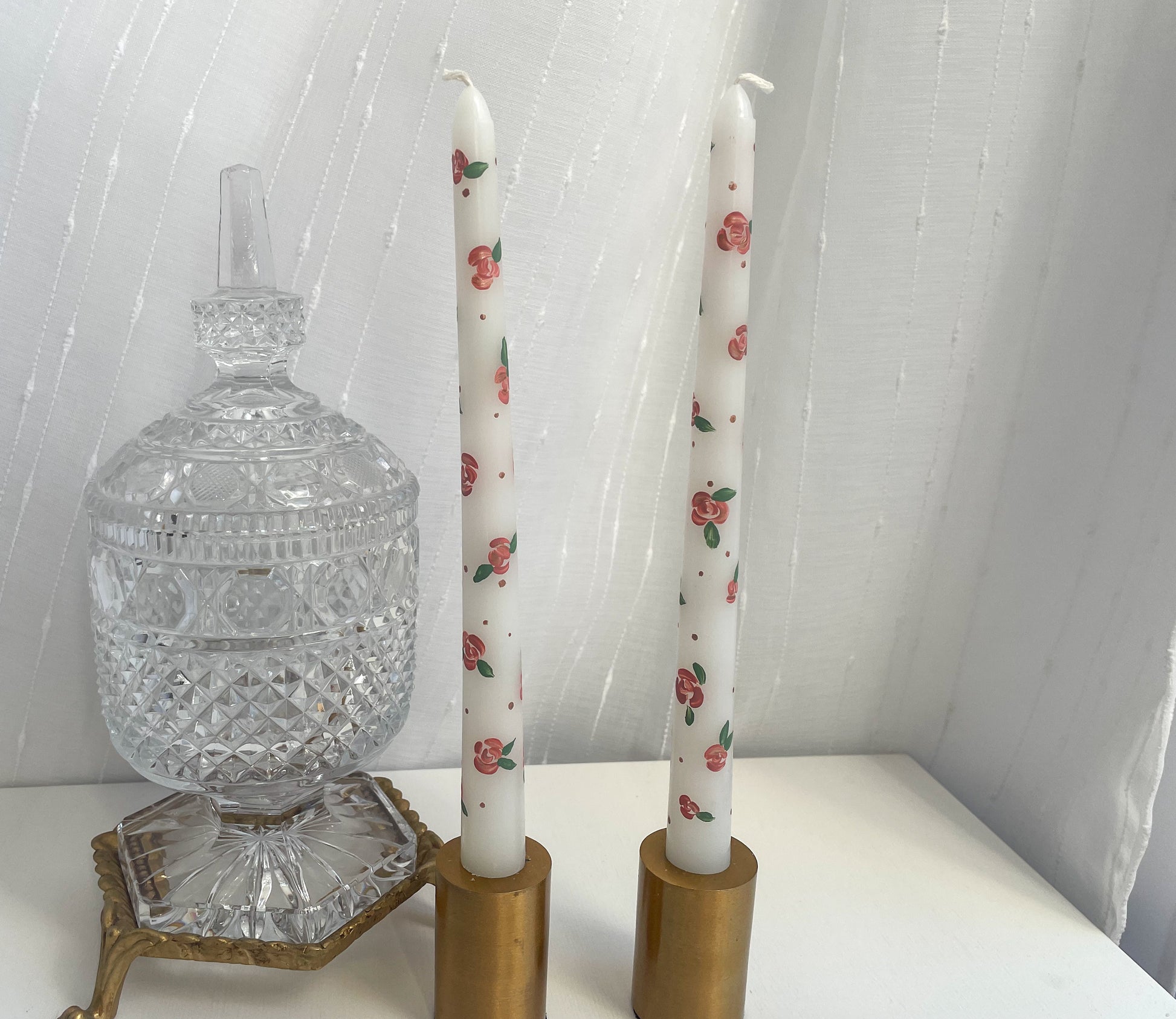 Light up your space with our Hand Painted Tapered Candle Sticks! Each one is uniquely designed and made to order, adding a touch of beauty and personality to any room. Perfect for a cozy night in or a special occasion. Brighten up your space with these one-of-a-kind candle sticks!