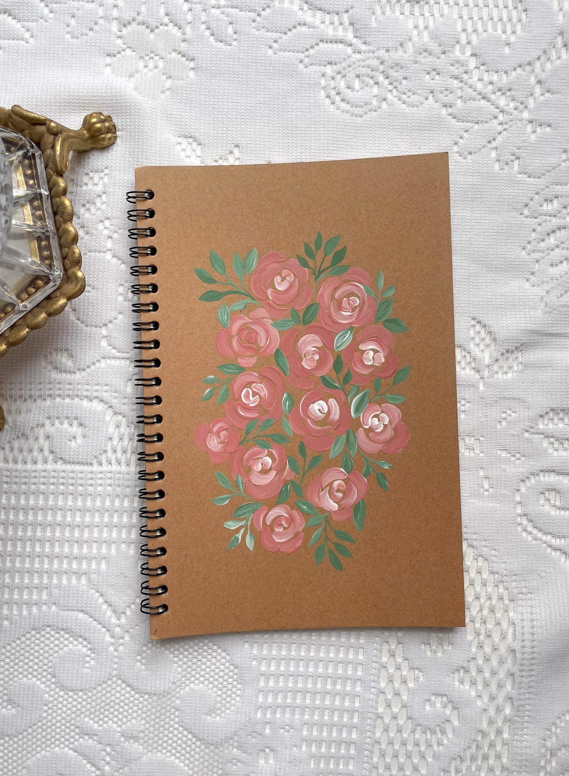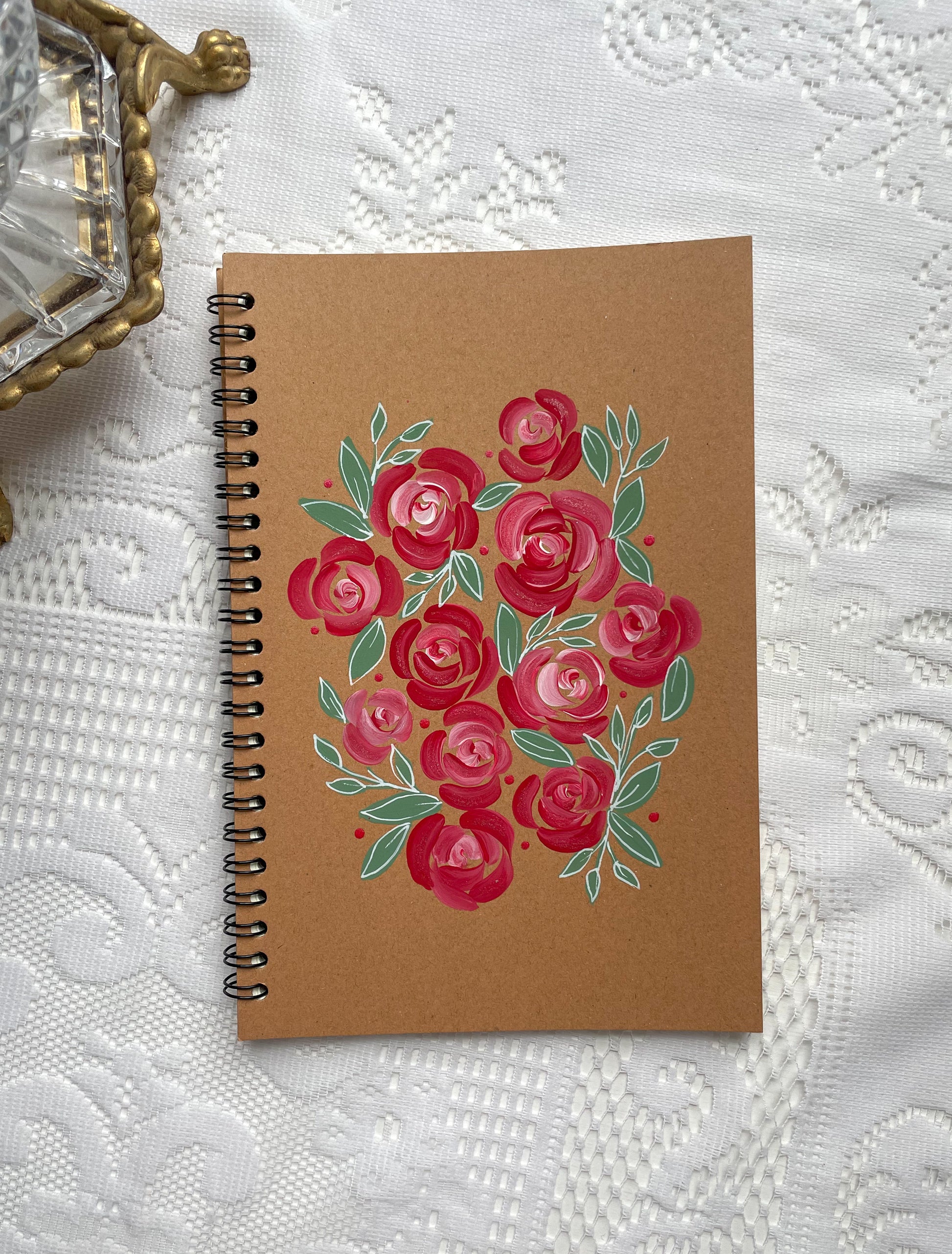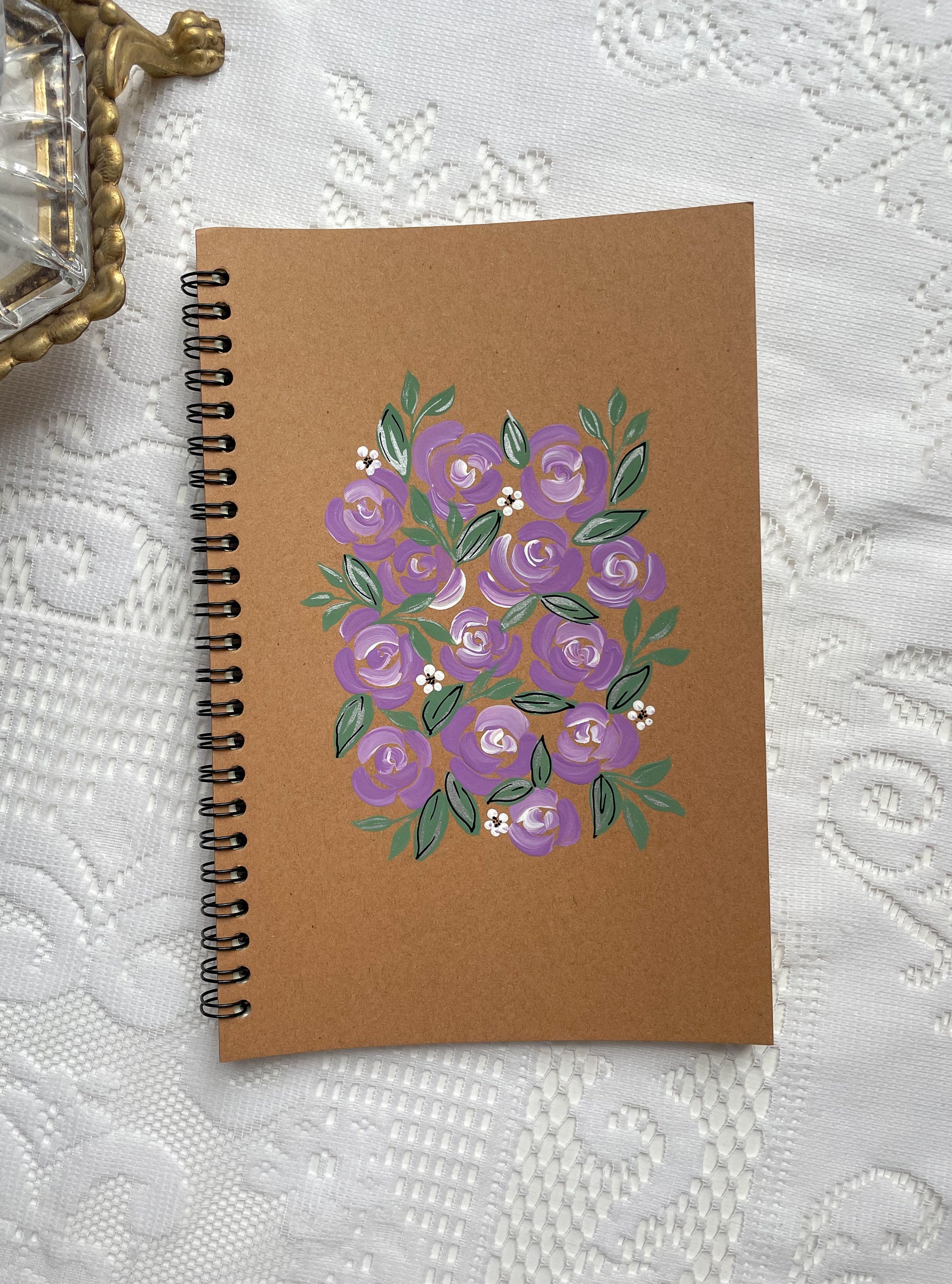 Hand Painted Floral Spiral Notebook